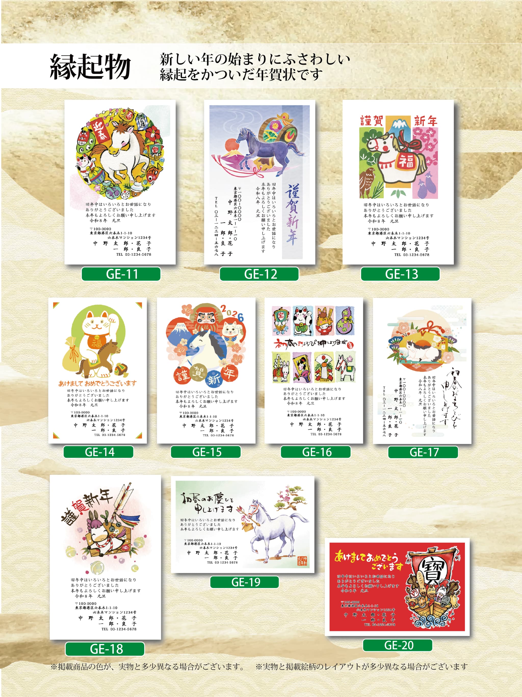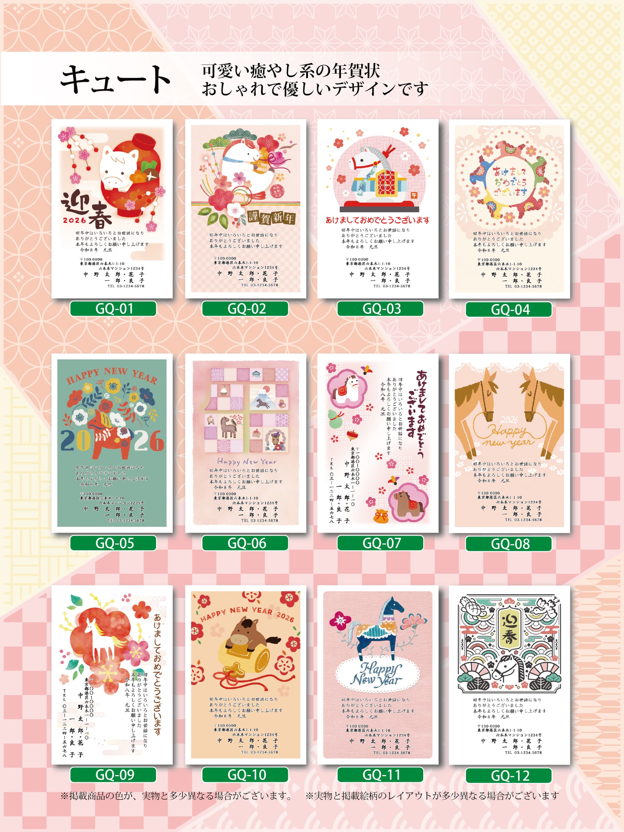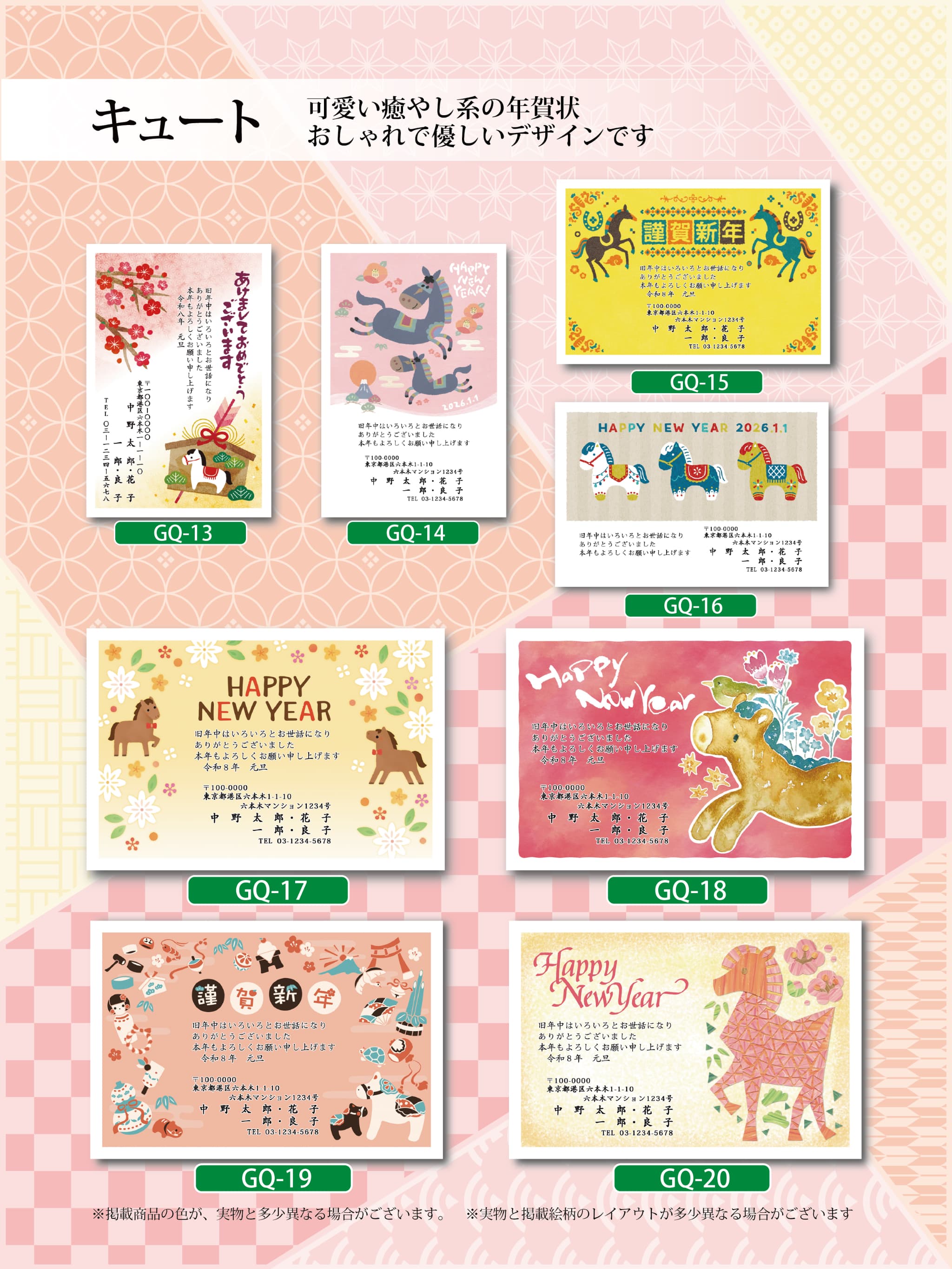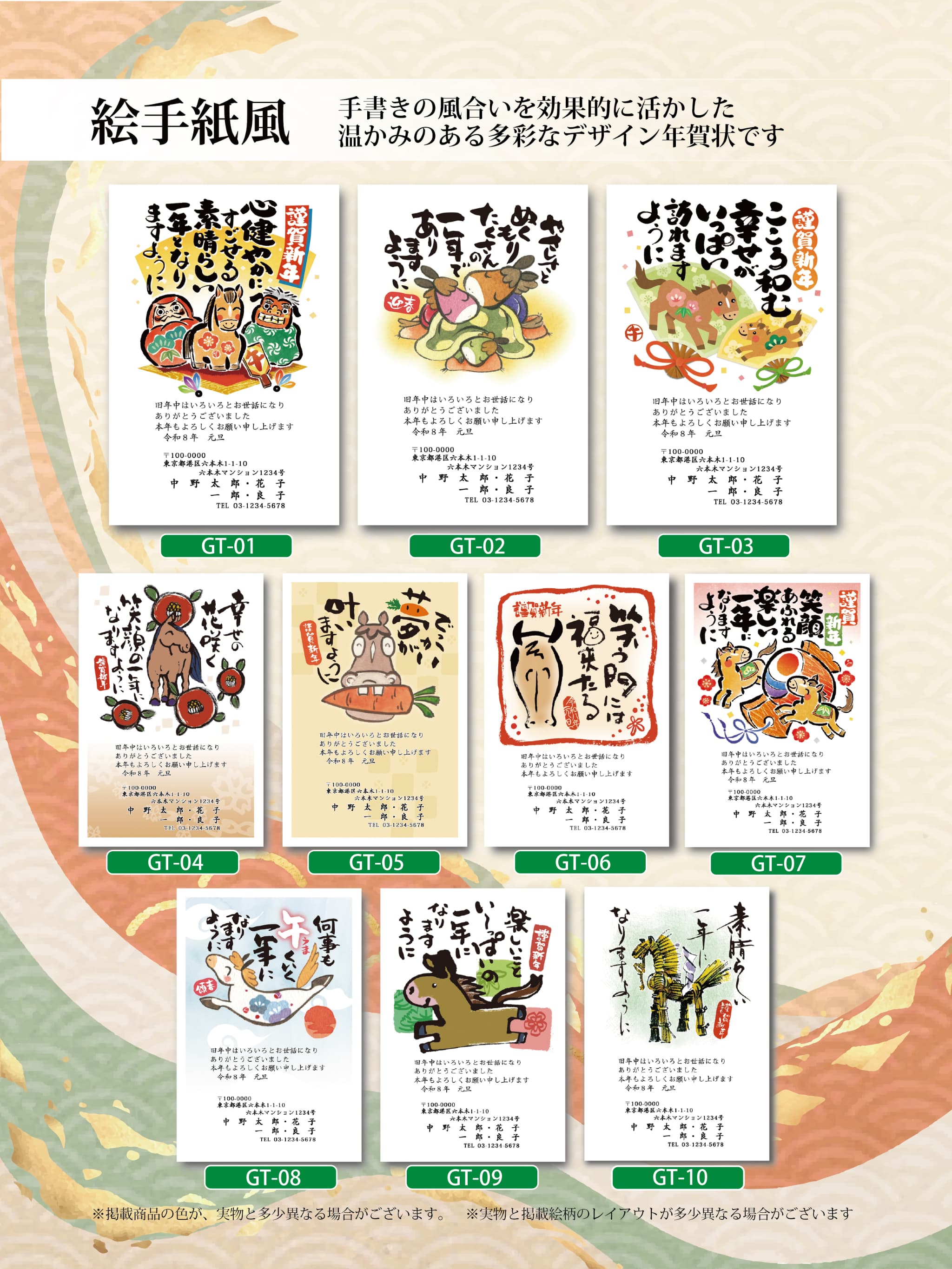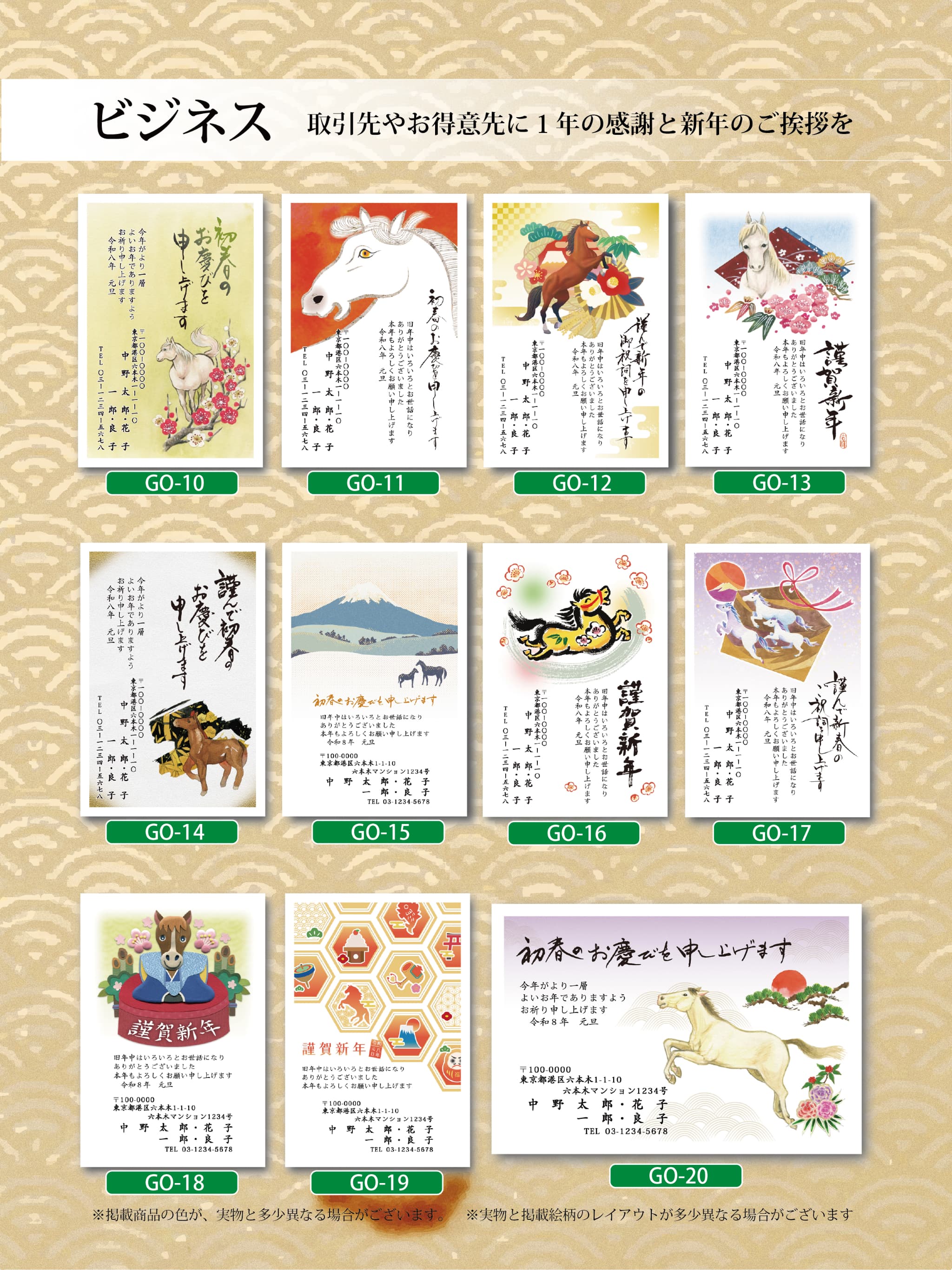 年賀状は一般、結婚、誕生、ビジネス、転居の5つのジャンルから選べ、スタイルもスタンダード、デザイナーズ、縁起物、キュート、和風、絵手紙風、ビジネスなどから選べるので、お気に入りのデザインがすぐに見つかります。その他、喪中、寒中見舞いなど、年賀状以外も厳選したデザインを揃えています。