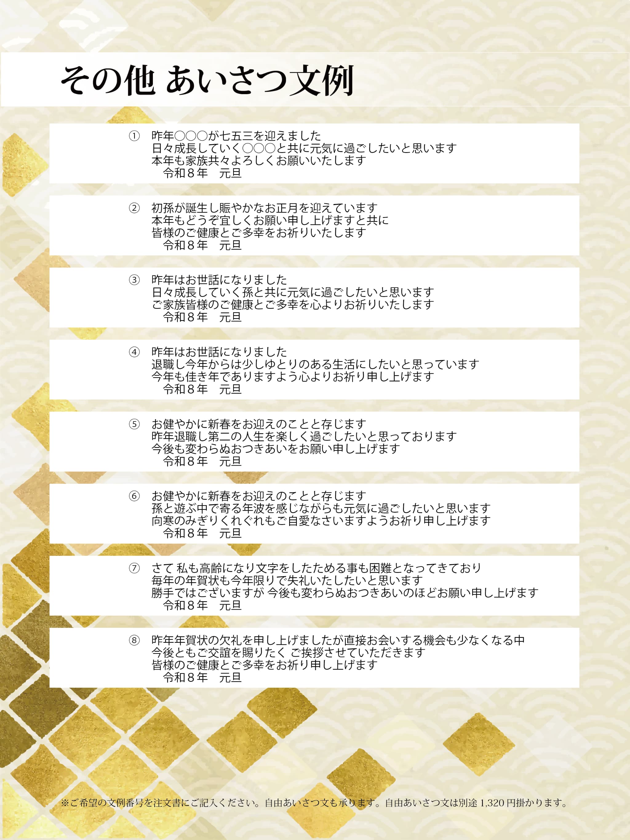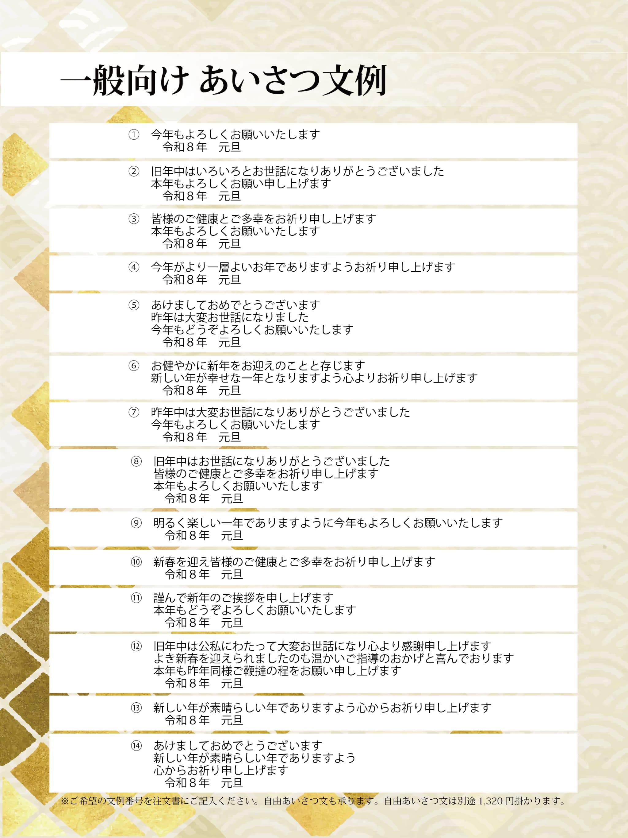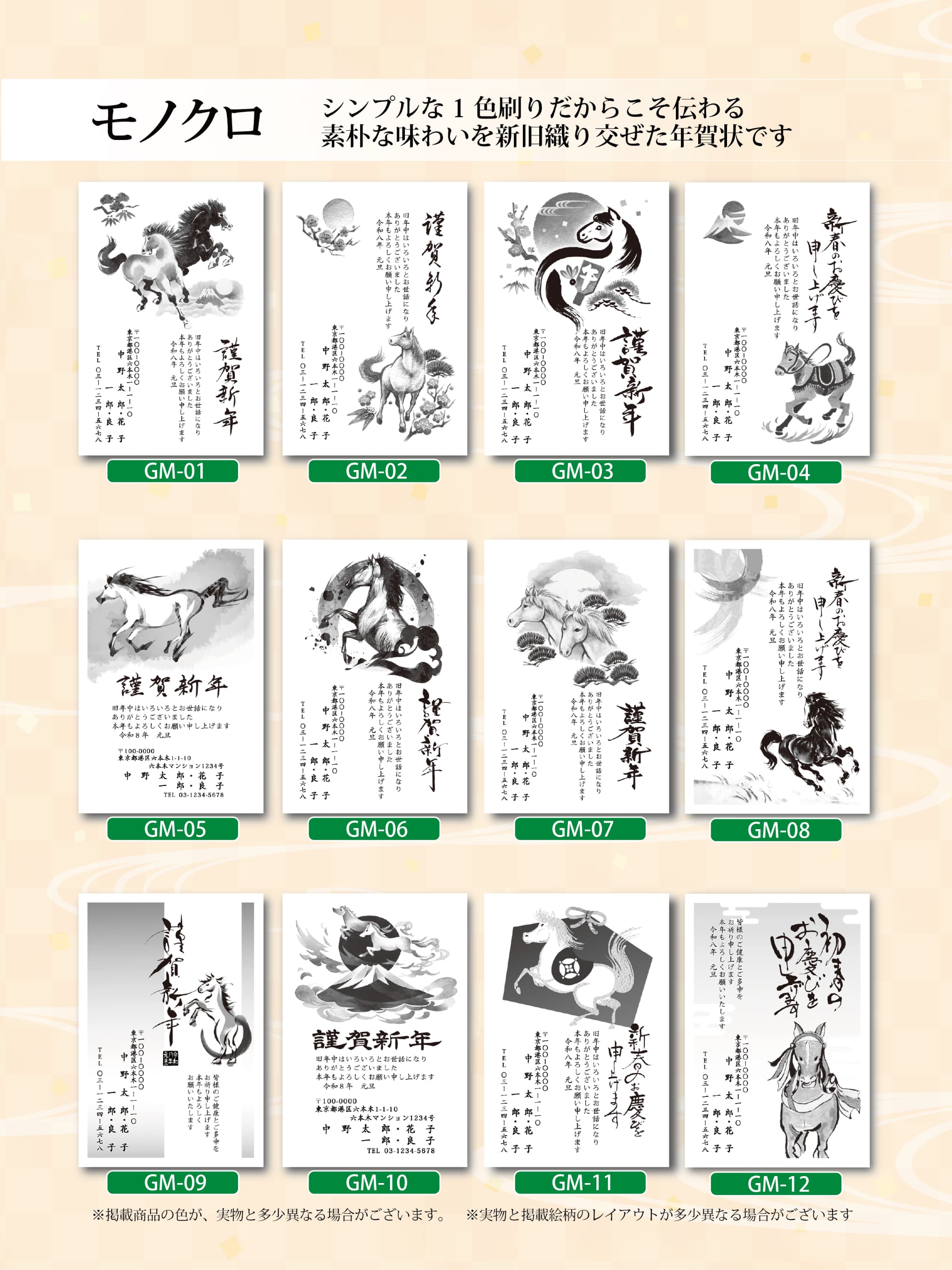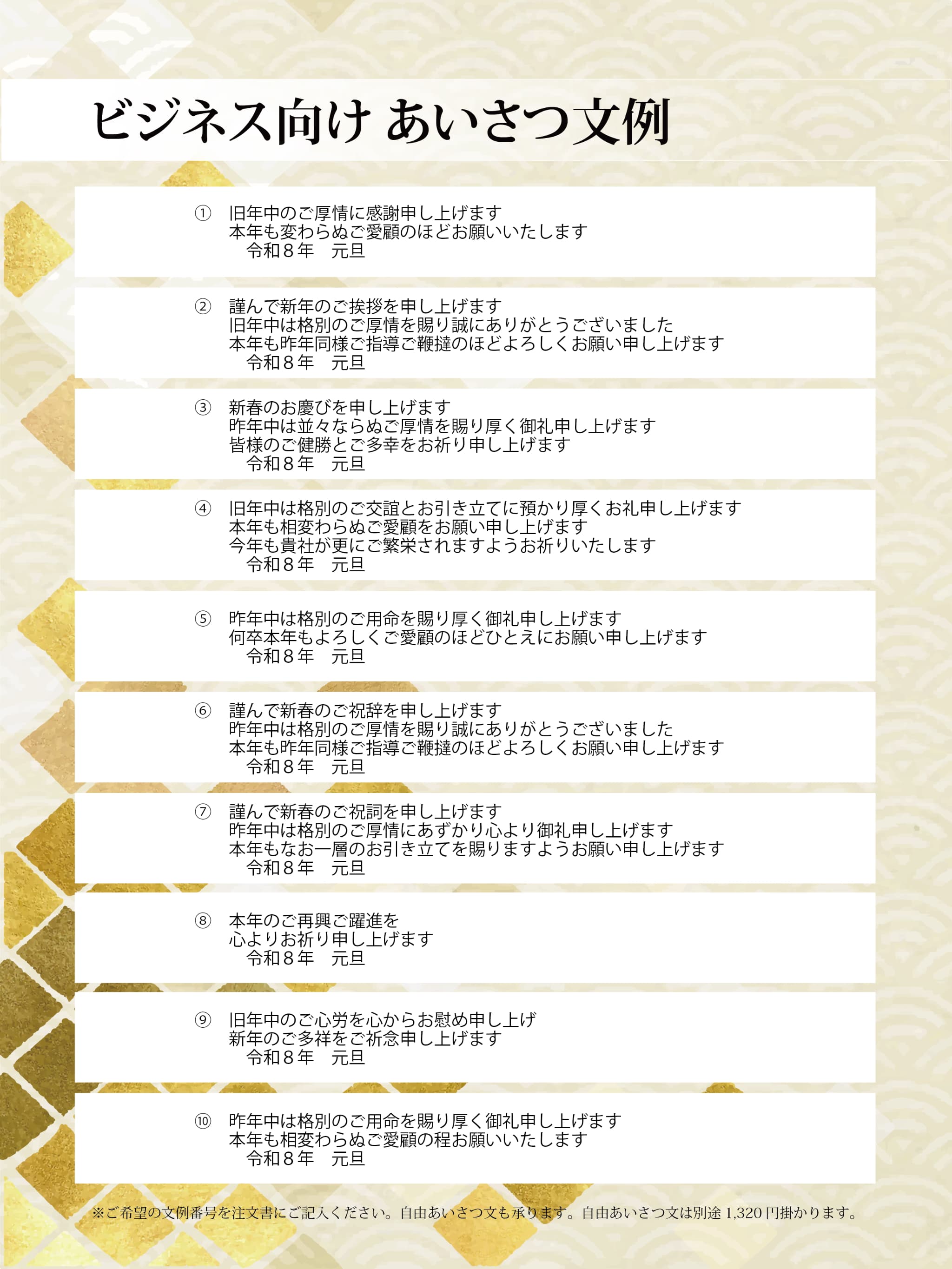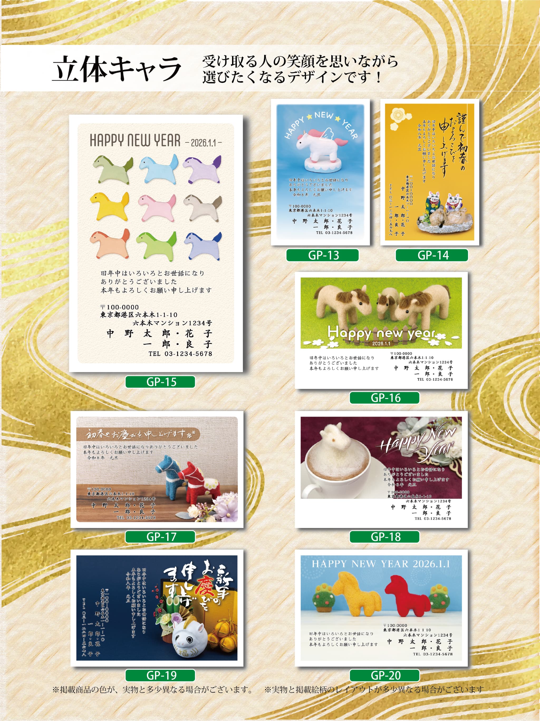 年賀状は一般、結婚、誕生、ビジネス、転居の5つのジャンルから選べ、スタイルもスタンダード、デザイナーズ、縁起物、キュート、和風、絵手紙風、ビジネスなどから選べるので、お気に入りのデザインがすぐに見つかります。その他、喪中、寒中見舞いなど、年賀状以外も厳選したデザインを揃えています。