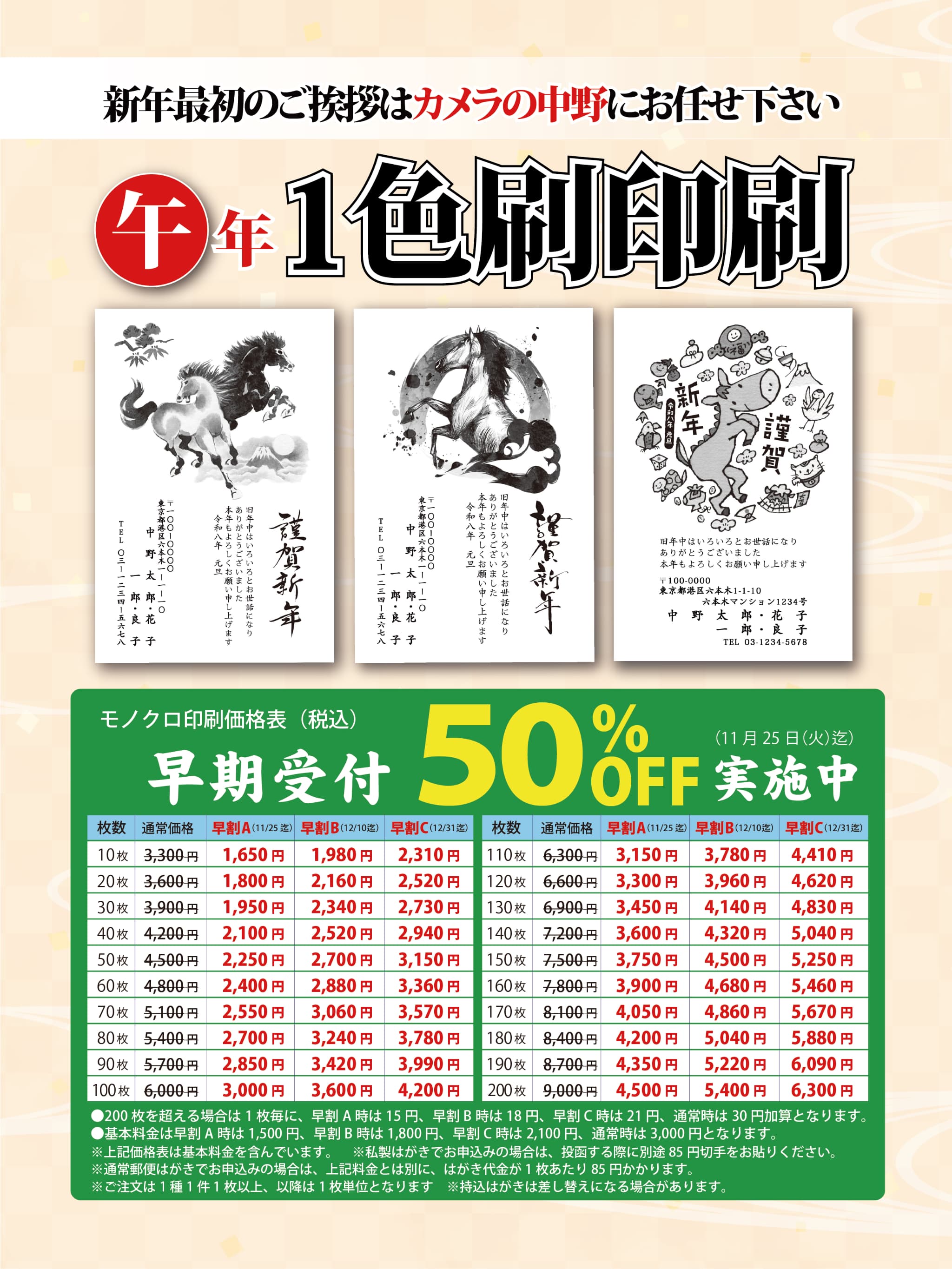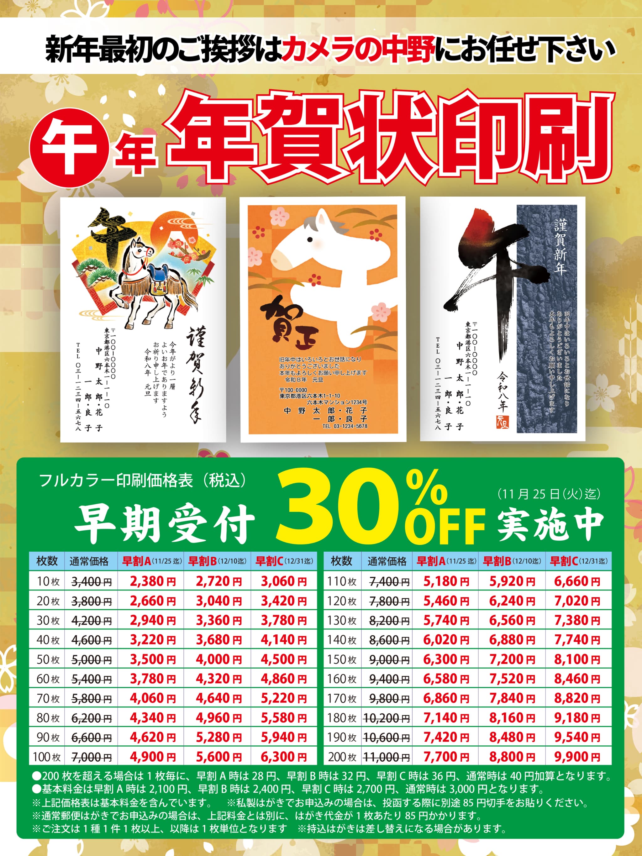 創業50年以上 信頼と実績のカメラの中野に年賀状印刷はおまかせください!