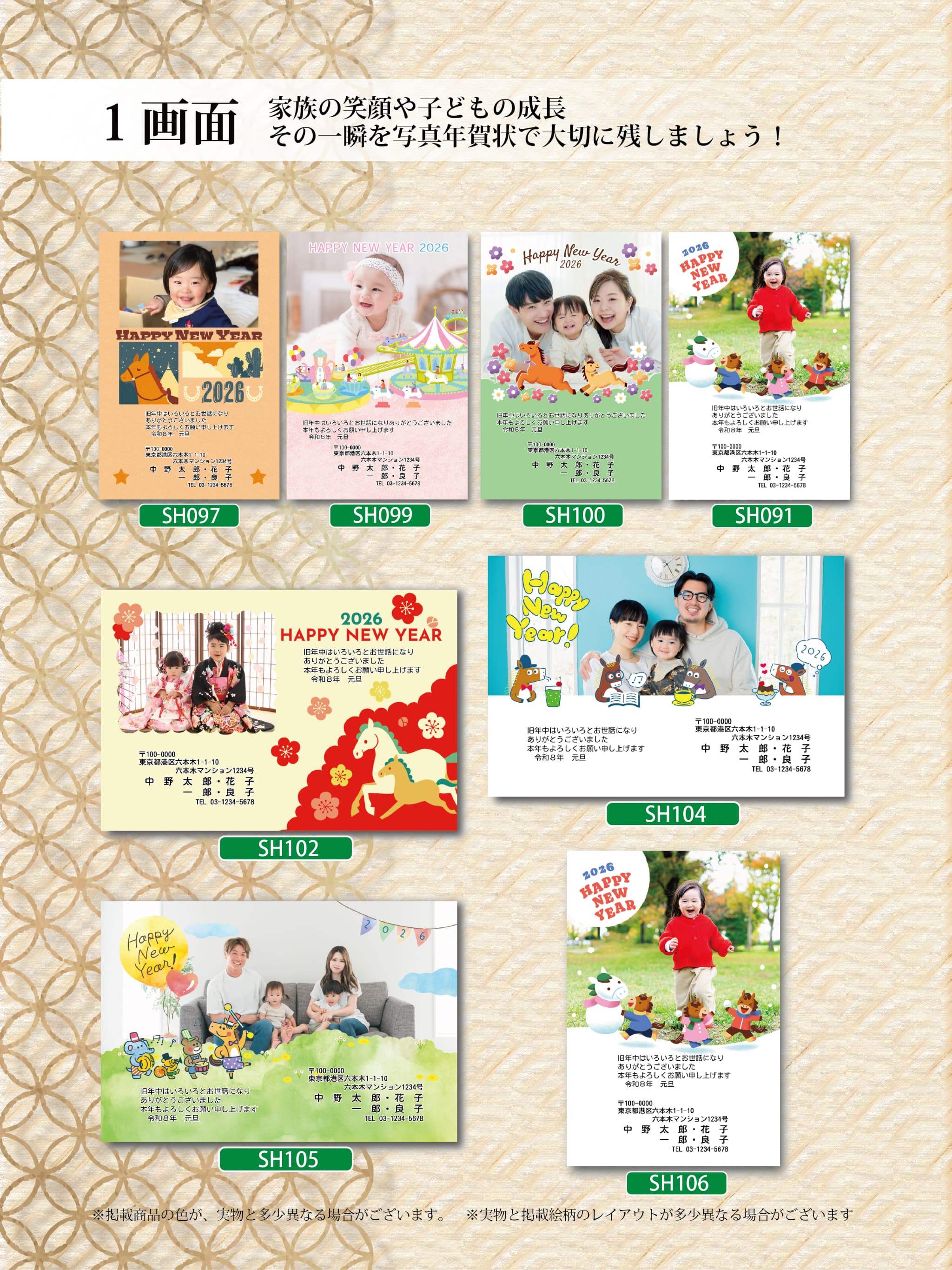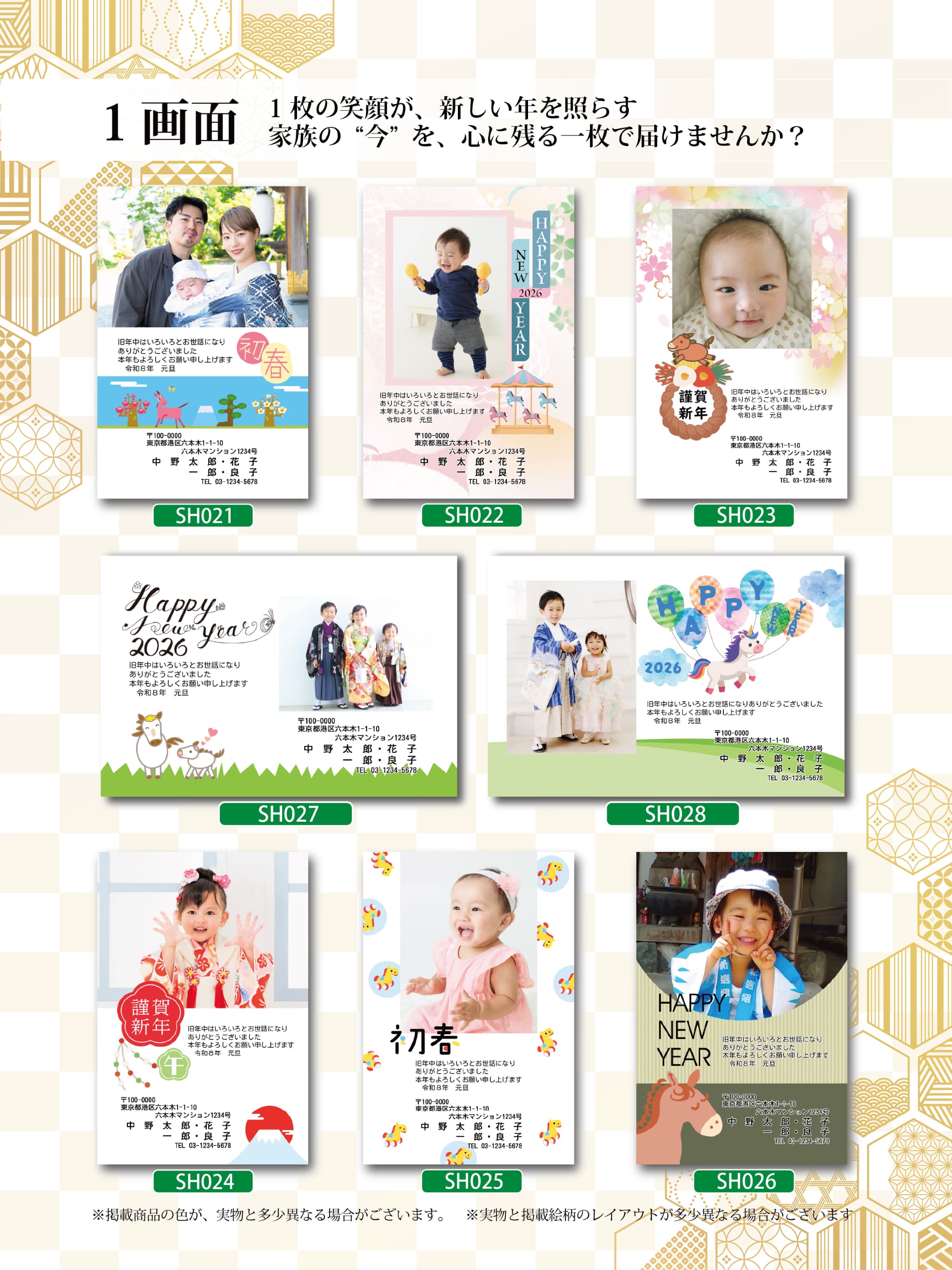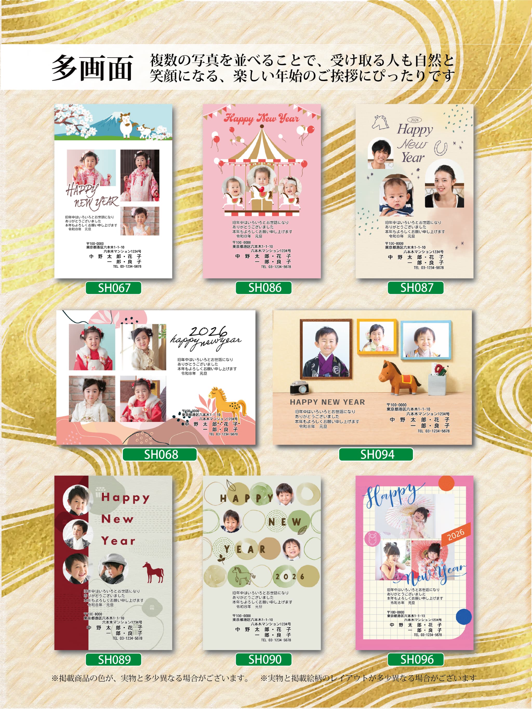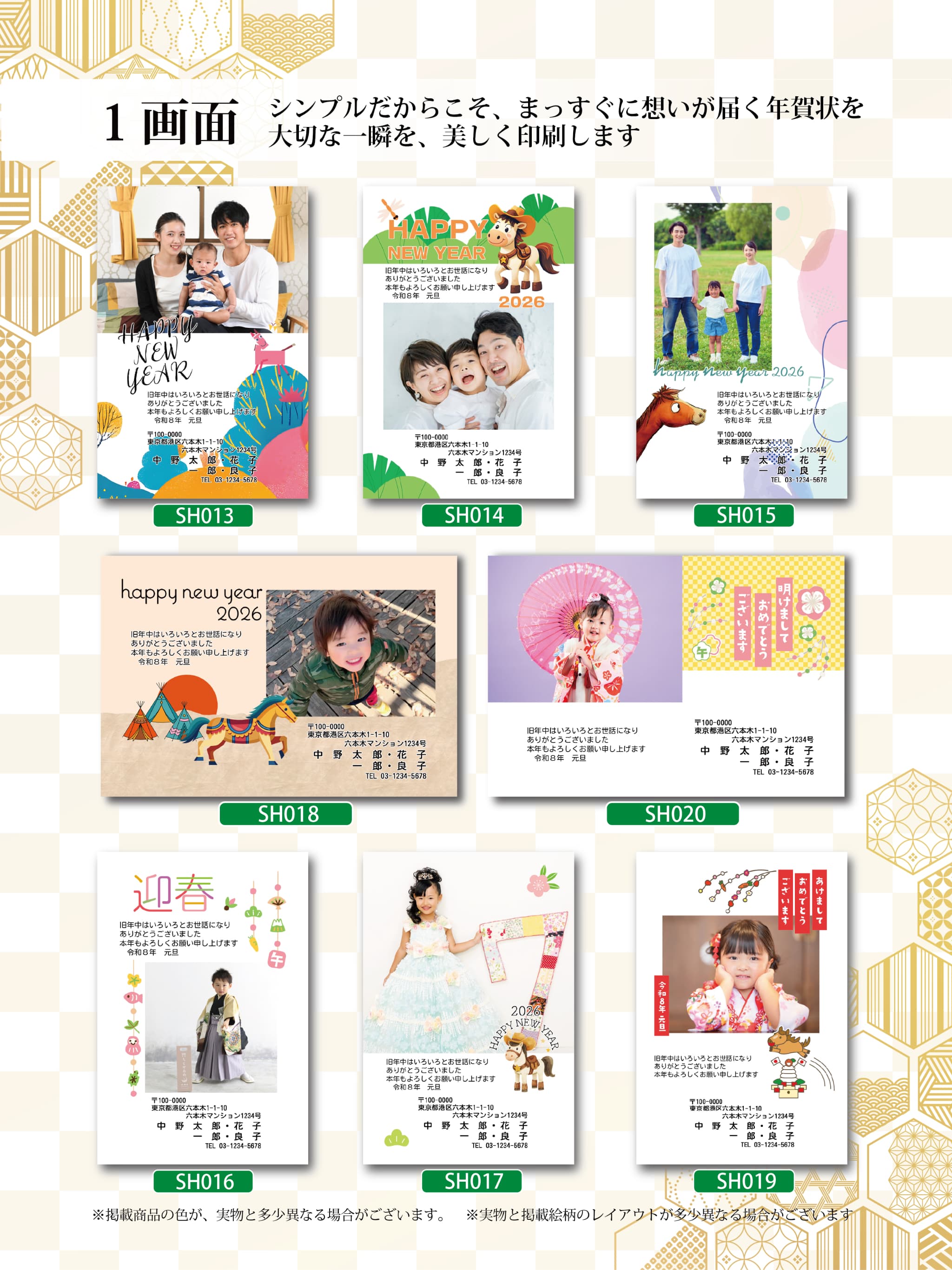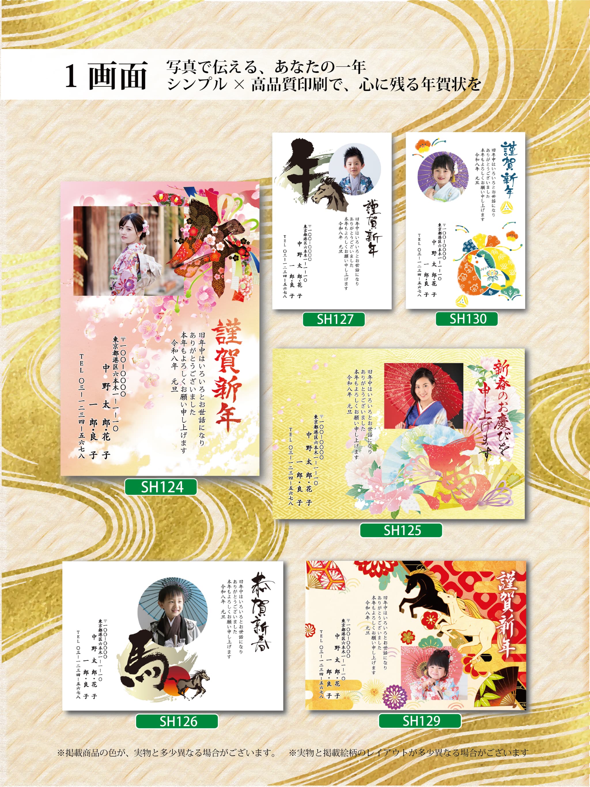 年賀状は1画面、2画面、多画面などから選べるので、お気に入りのデザインがすぐに見つかります!写真専門店として培った熟練の技術で、店舗でプリントした写真のように高画質、高品質な年賀状を作成いたします。