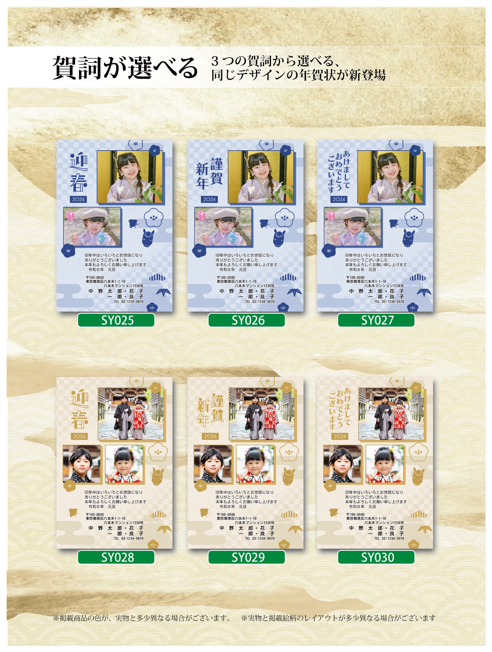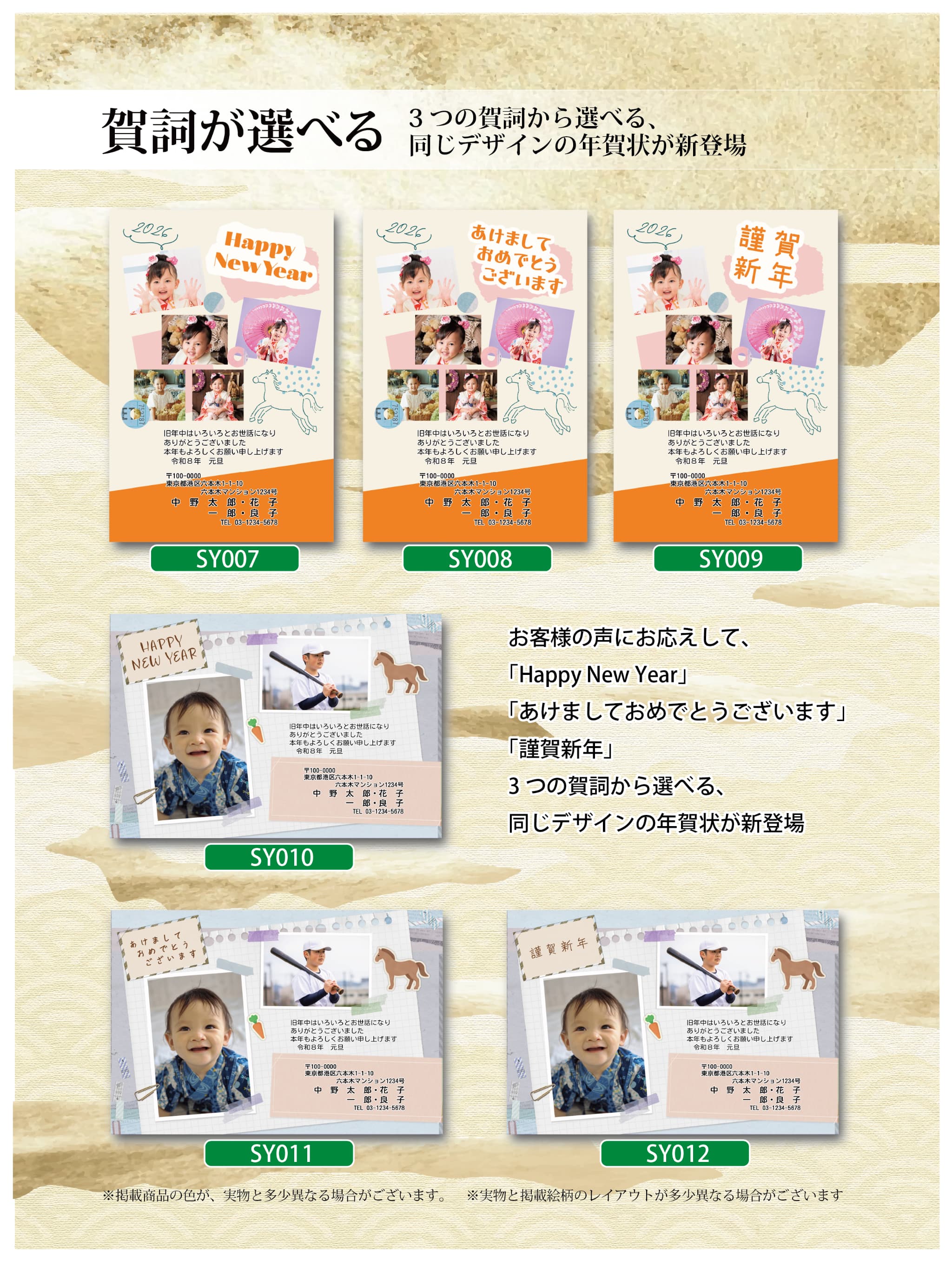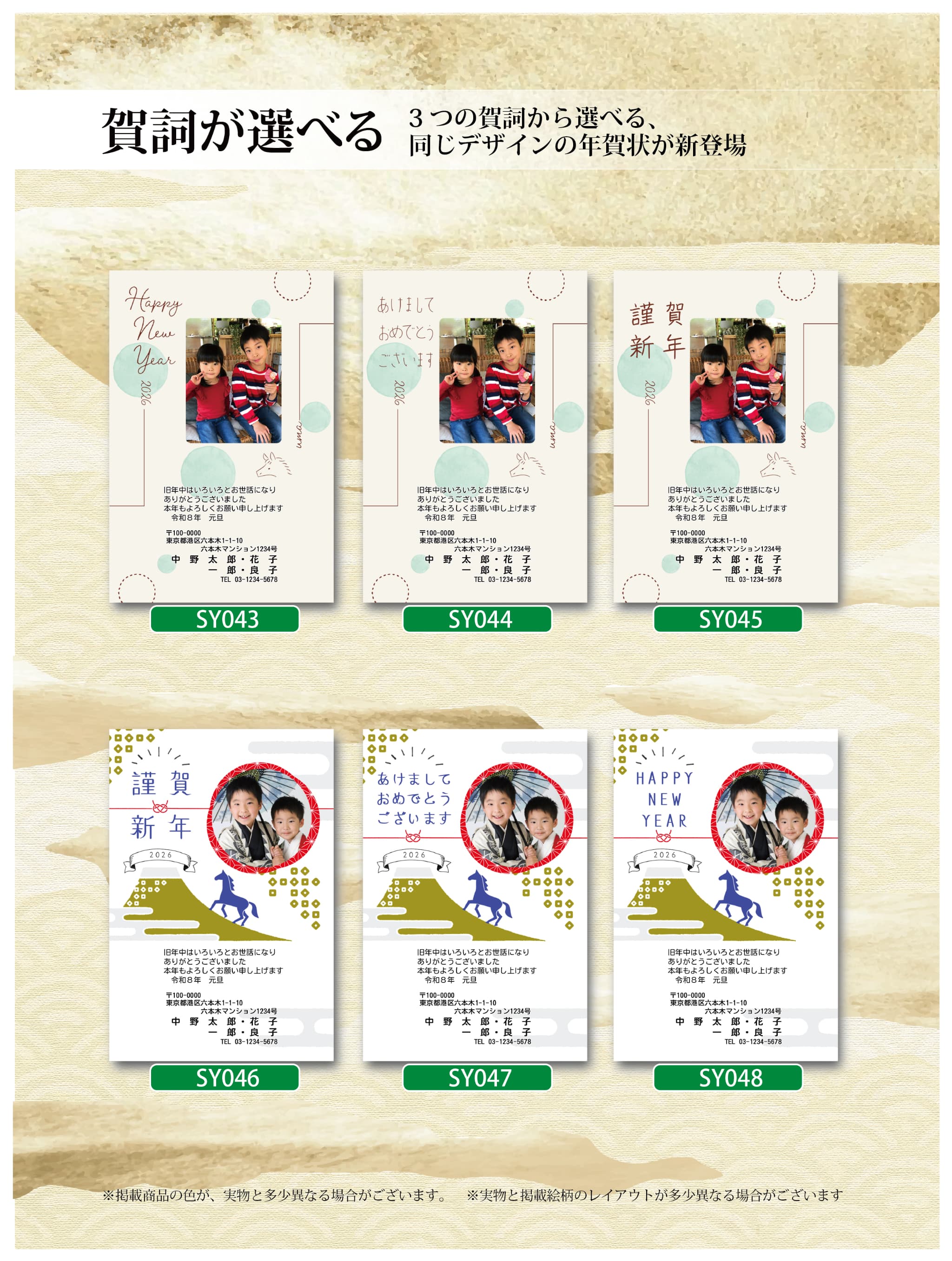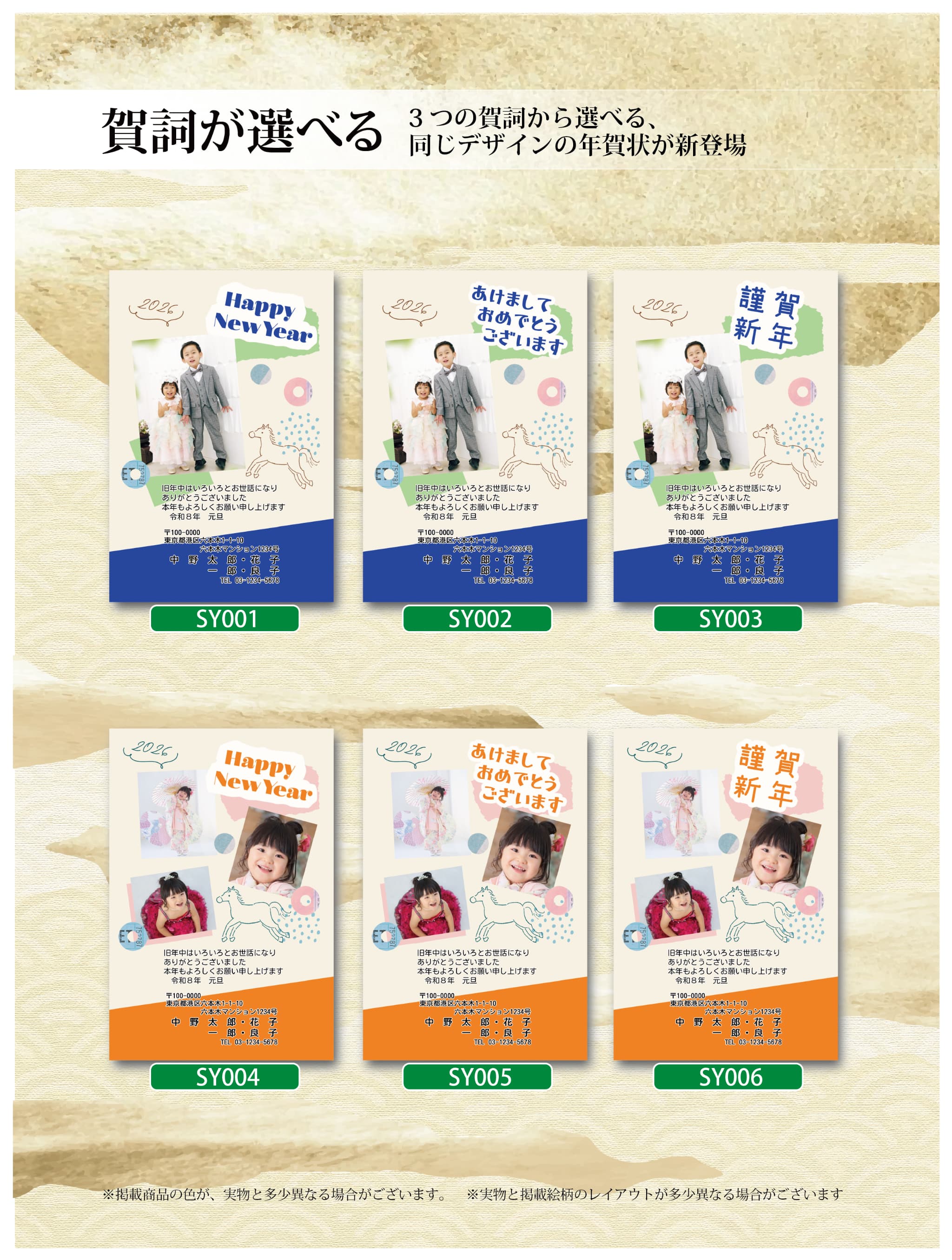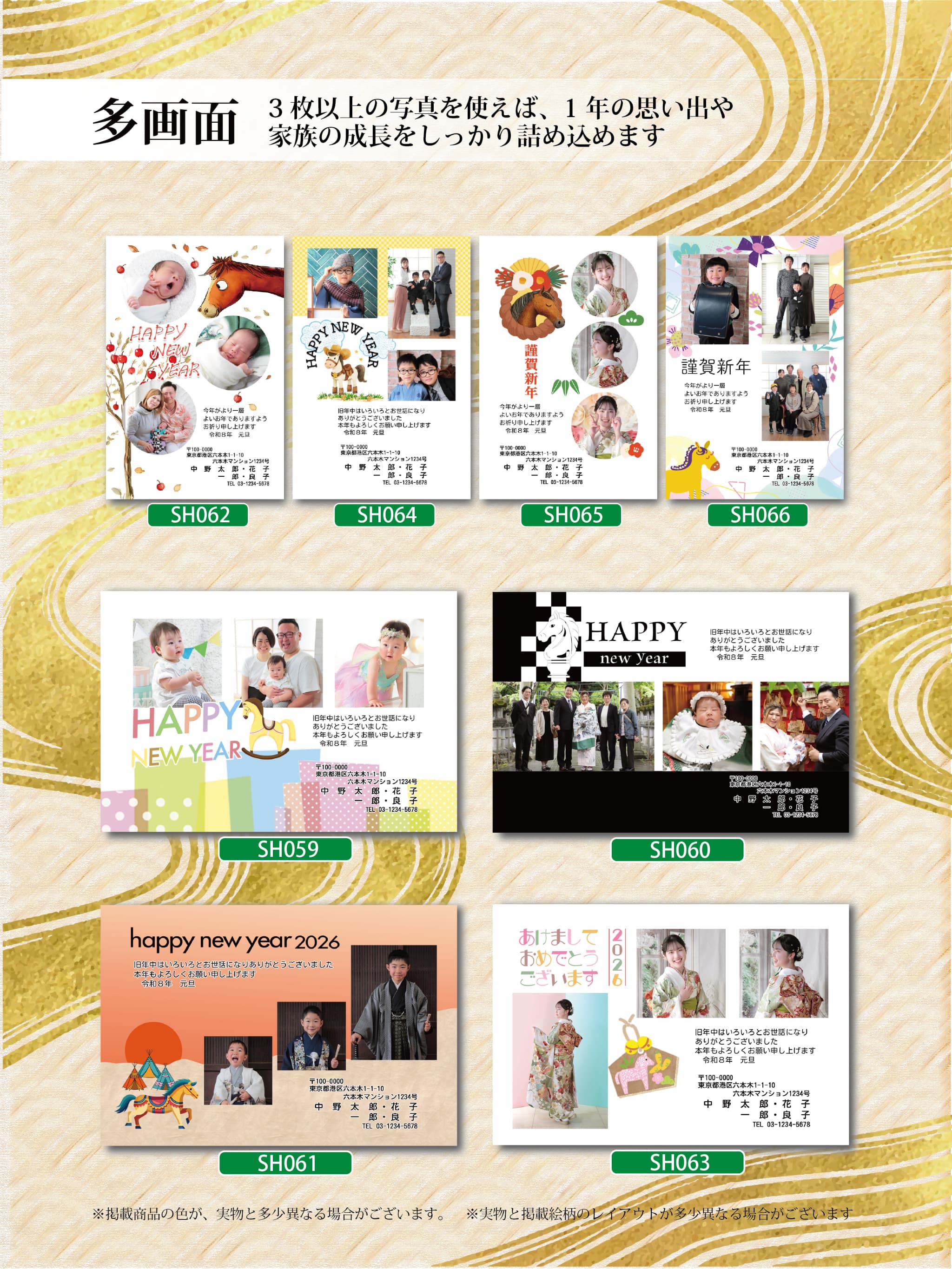 年賀状は1画面、2画面、多画面などから選べるので、お気に入りのデザインがすぐに見つかります!写真専門店として培った熟練の技術で、店舗でプリントした写真のように高画質、高品質な年賀状を作成いたします。
