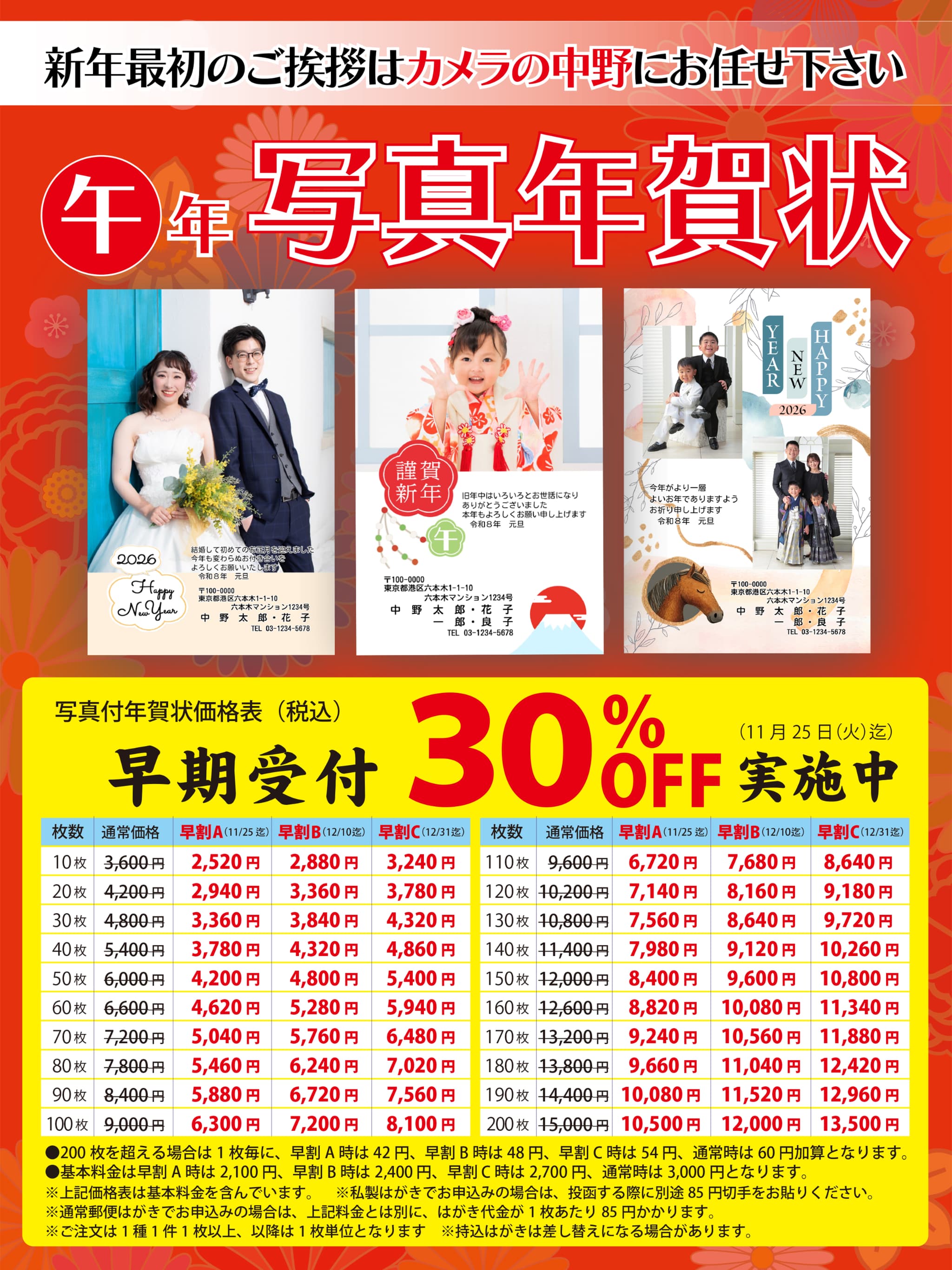 創業50年以上 信頼と実績のカメラの中野に写真付き年賀状はおまかせください!